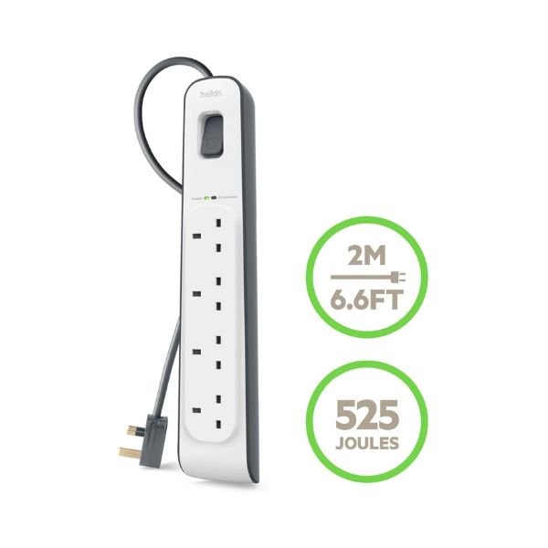 Belkin 4-Outlet Surge Protector with 2M Cord + 2 USB